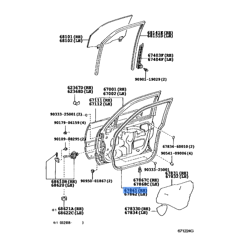FR/DOOR RUBBER RH MANUFACTURED BY TOYOTA , PART NUMBER 67861-60101 , OE PART NUMBER 67861-60101 TO FIT TOYOTA VEHICLES- ✓ Manufacturer’s Part Number (MPN): 67861-60101