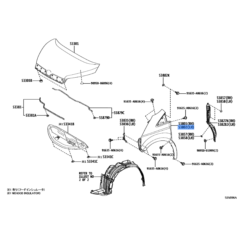 Genuine Part Number: 53802-26070