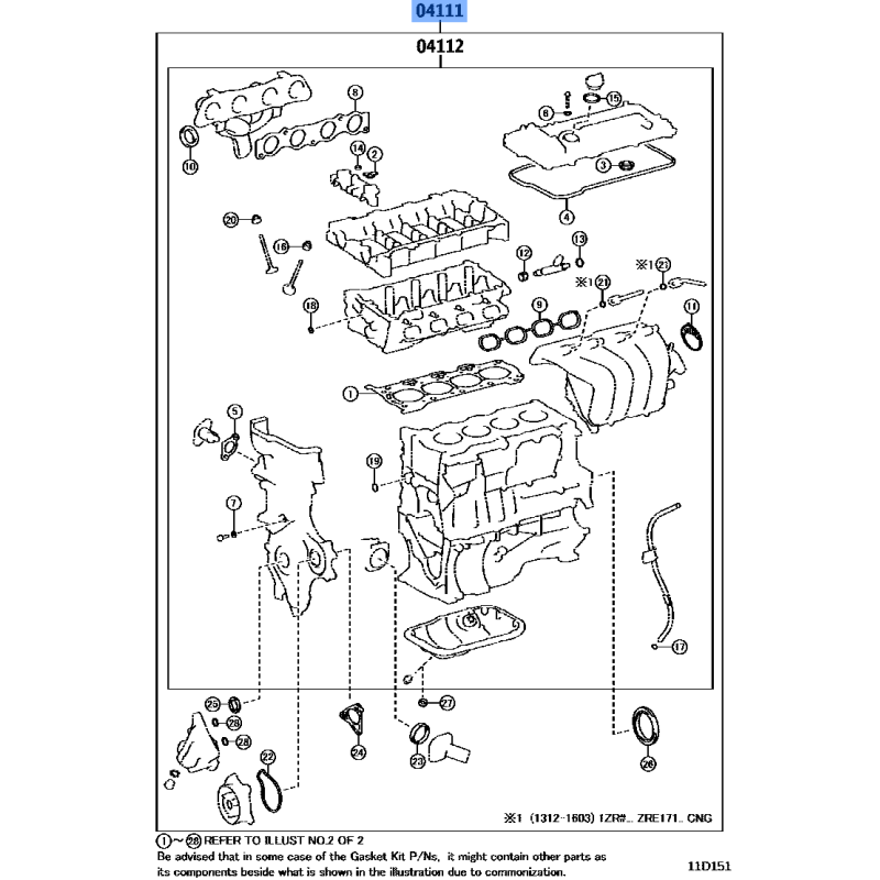 GASKET KIT MANUFACTURED BY TOYOTA , PART NUMBER 04111-37097 , OE PART NUMBER 04111-37097 TO FIT TOYOTA VEHICLES- Manufacturer: TOYOTA