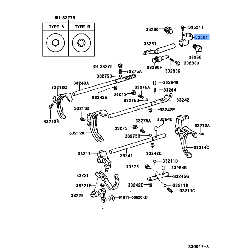 GEAR LIVER SHIFT MANUFACTURED BY TOYOTA , PART NUMBER 33502-22190 , OE PART NUMBER 33502-22190 TO FIT TOYOTA VEHICLES