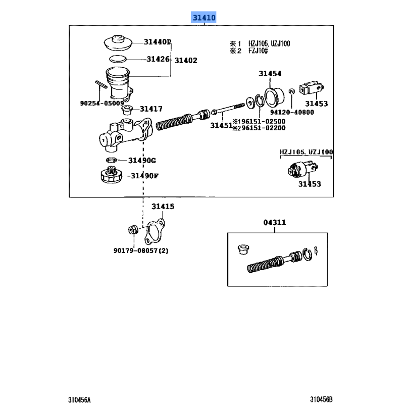 - Land Cruiser 100 FZJ105R • 1FZ-FE (1998-2007) - Clutch Master Cylinder
