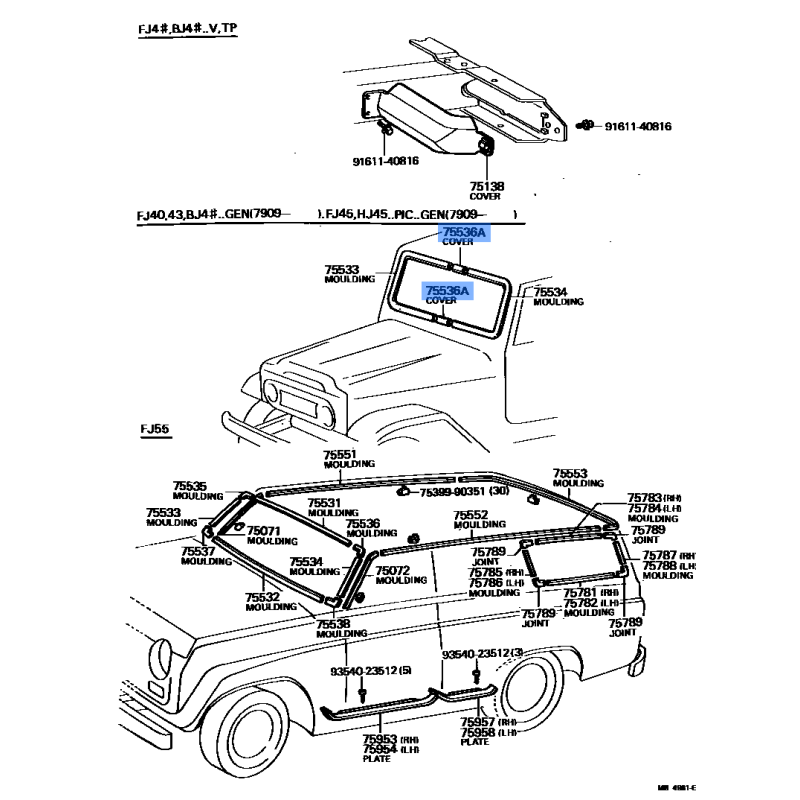 GLASS MOULDING MANUFACTURED BY TOYOTA , PART NUMBER 75543-89102 , OE PART NUMBER 75543-89102 TO FIT TOYOTA VEHICLES