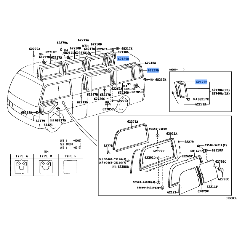 GLASS RUBBER MANUFACTURED BY TOYOTA , PART NUMBER 62129-36010 , OE PART NUMBER 62129-36010 TO FIT TOYOTA VEHICLES