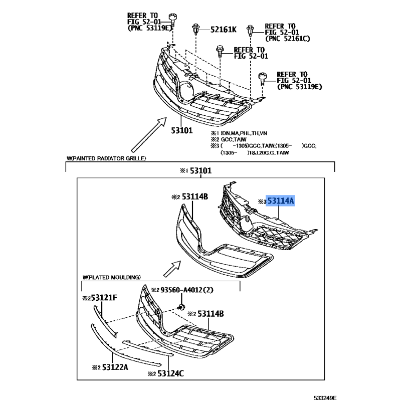 GRILLE MANUFACTURED BY TOYOTA , PART NUMBER 53114-02230 , OE PART NUMBER 53114-02230 TO FIT TOYOTA VEHICLES