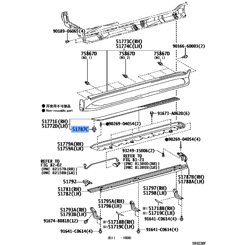 INSERT SIDE DOOR MANUFACTURED BY TOYOTA , PART NUMBER 51787-60070 , OE PART NUMBER 51787-60070 TO FIT TOYOTA VEHICLES- Manufacturer: TOYOTA