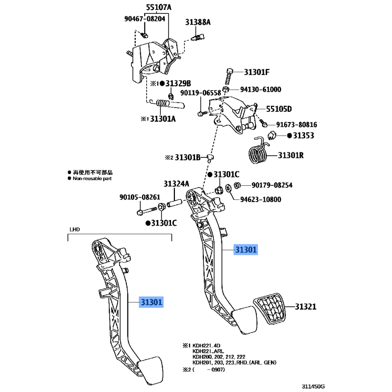 LEVER CLUTCH PEDAL MANUFACTURED BY TOYOTA , PART NUMBER 31311-26161 , OE PART NUMBER 31311-26161 TO FIT TOYOTA VEHICLESTechnical Specification