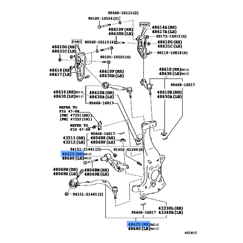 LEX-ARM ASSY LOWER RH MANUFACTURED BY TOYOTA , PART NUMBER 48620-50070 , OE PART NUMBER 48620-50070 TO FIT TOYOTA VEHICLESTechnical Specification