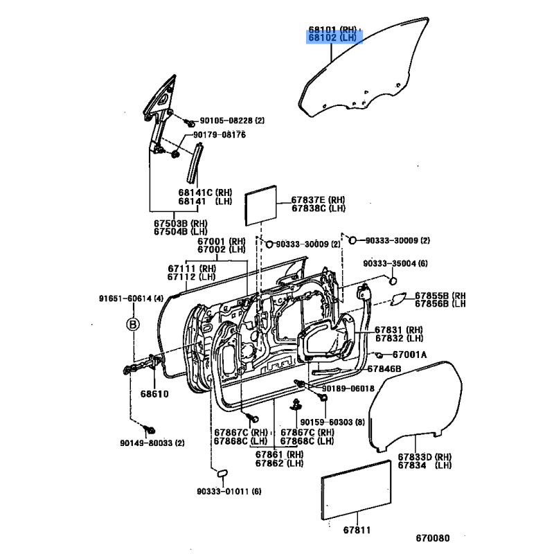 LEX GLASS SUB ASSY MANUFACTURED BY TOYOTA , PART NUMBER 68102-33152 , OE PART NUMBER 68102-33152 TO FIT TOYOTA VEHICLES- Manufacturer: TOYOTA