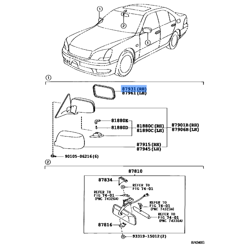 MIRROR MANUFACTURED BY TOYOTA , PART NUMBER 87902-33140 , OE PART NUMBER 87902-33140 TO FIT TOYOTA VEHICLES