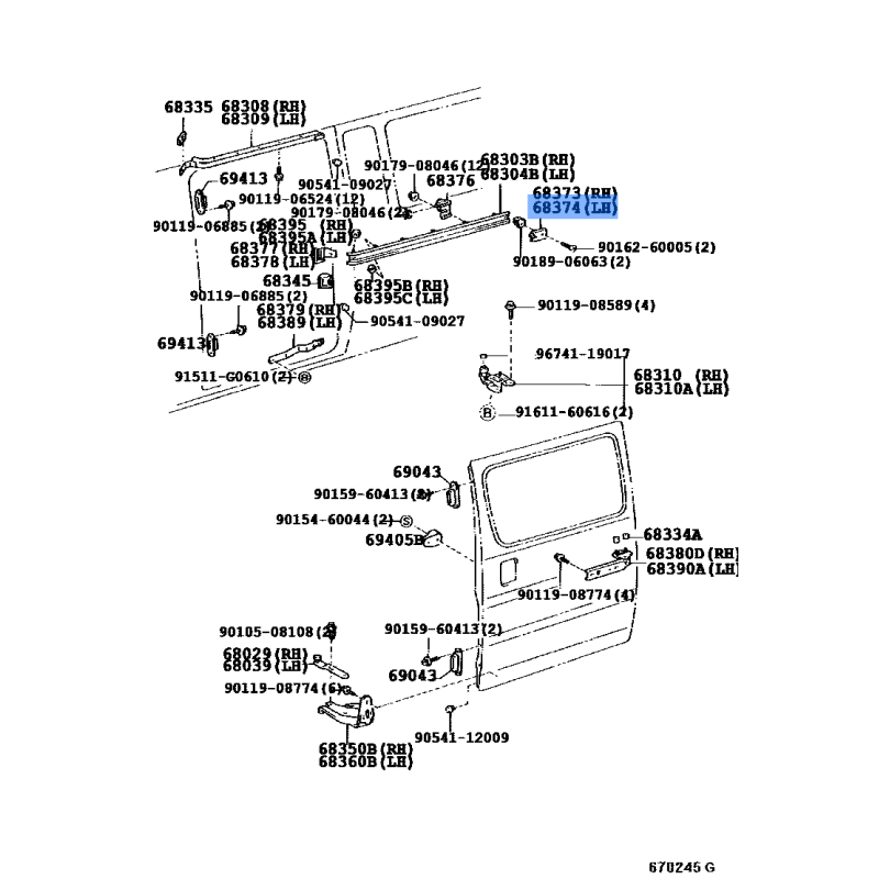 MOULDING SLIDE RAIL MANUFACTURED BY TOYOTA , PART NUMBER 68374-26060 , OE PART NUMBER 68374-26060 TO FIT TOYOTA VEHICLES