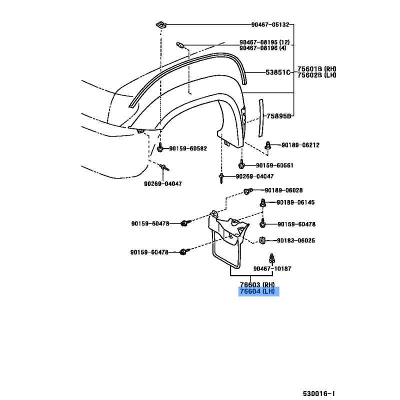 MUDGUARD FR FENDER MANUFACTURED BY TOYOTA , PART NUMBER 76622-39405 , OE PART NUMBER 76622-39405 TO FIT TOYOTA VEHICLES