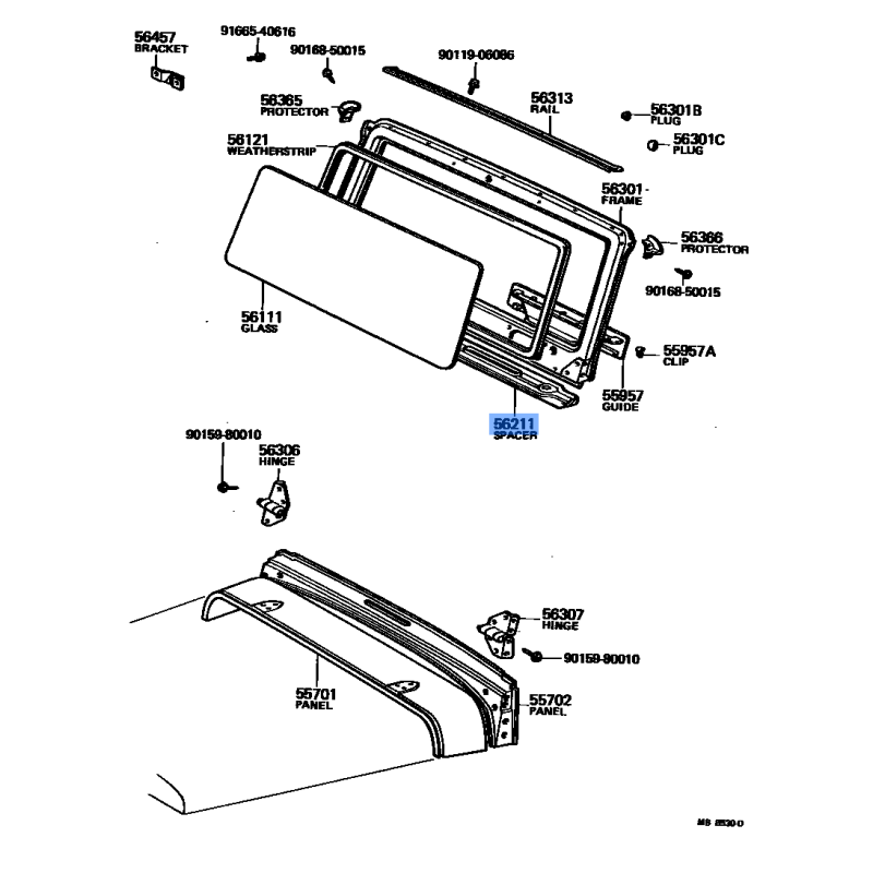 SPACER MANUFACTURED BY TOYOTA , PART NUMBER 56211-90801 , OE PART NUMBER 56211-90801 TO FIT TOYOTA VEHICLES- Manufacturer: TOYOTA