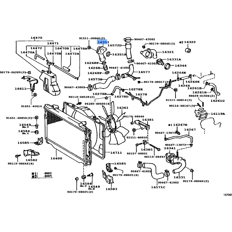 OUTLET WATER MANUFACTURED BY TOYOTA , PART NUMBER 16351-66010 , OE PART NUMBER 16351-66010 TO FIT TOYOTA VEHICLESTechnical Specification