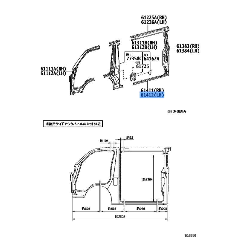 PANEL MANUFACTURED BY TOYOTA , PART NUMBER 61412-26270 , OE PART NUMBER 61412-26270 TO FIT TOYOTA VEHICLES