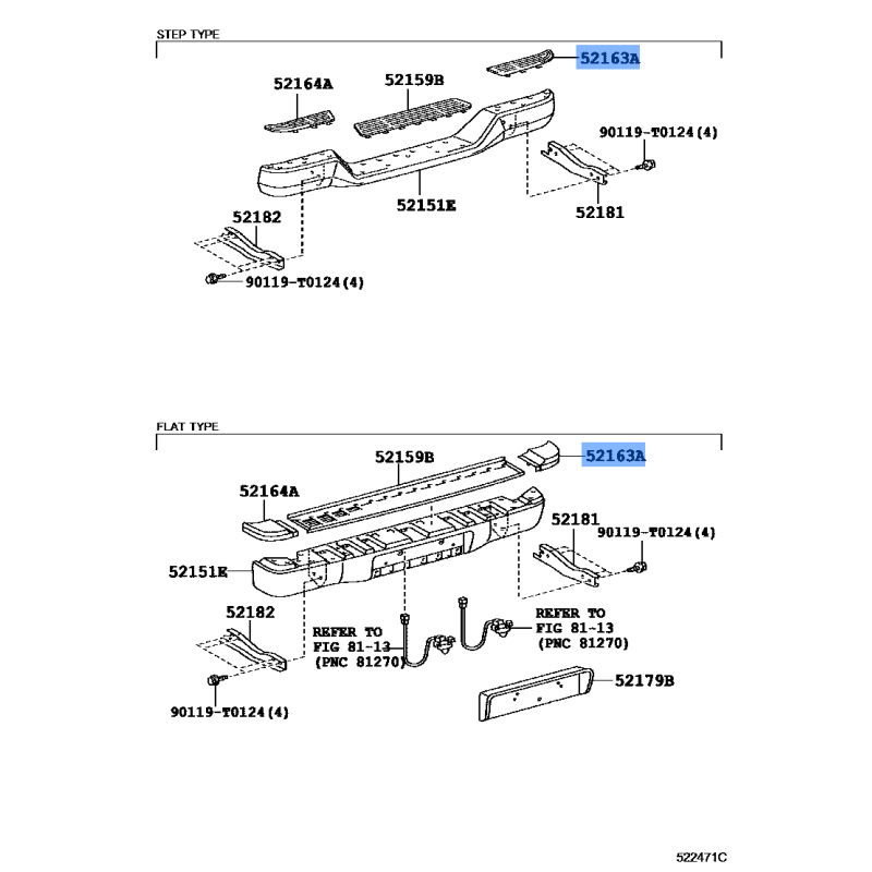 PLATE RR BUMPER RH MANUFACTURED BY TOYOTA , PART NUMBER 52163-04010 , OE PART NUMBER 52163-04010 TO FIT TOYOTA VEHICLES- Manufacturer: TOYOTA