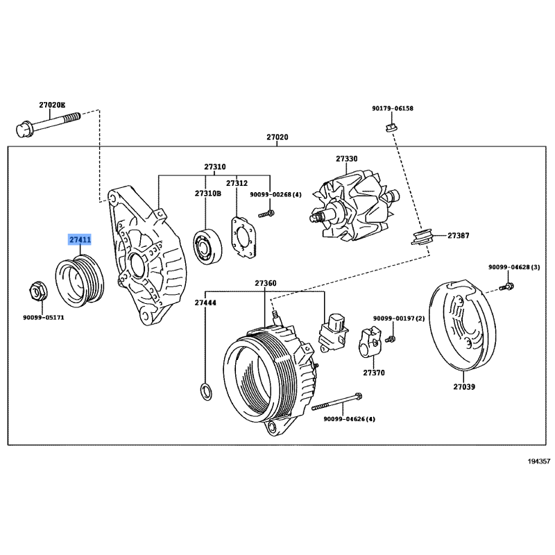 PULLEY MANUFACTURED BY TOYOTA , PART NUMBER 27411-31200 , OE PART NUMBER 27411-31200 TO FIT TOYOTA VEHICLES- Manufacturer: TOYOTA