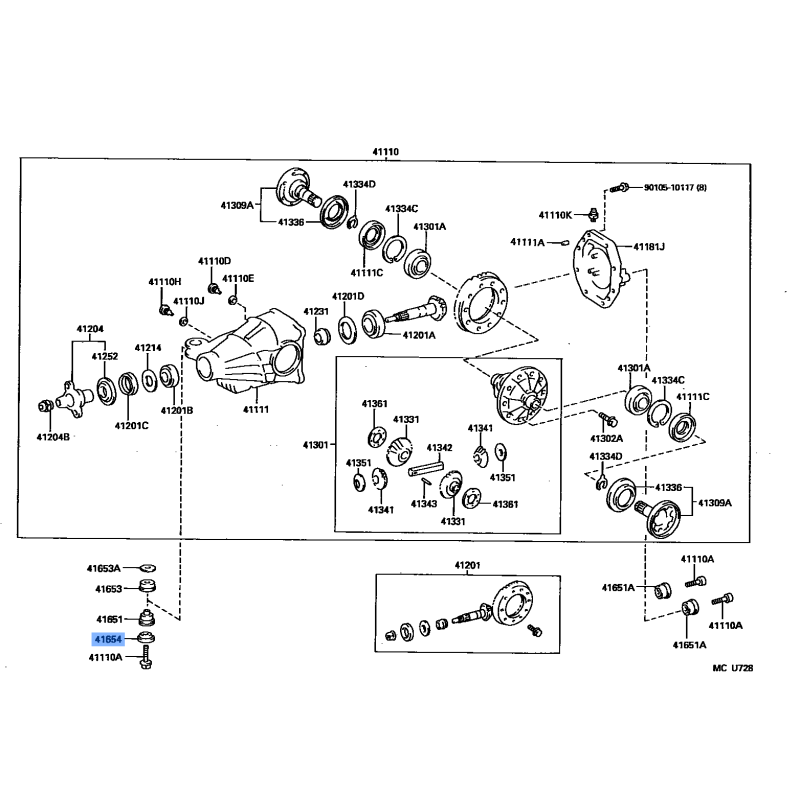 STOPER DIFFERENTI MANUFACTURED BY TOYOTA , PART NUMBER 41654-50010 , OE PART NUMBER 41654-50010 TO FIT TOYOTA VEHICLES