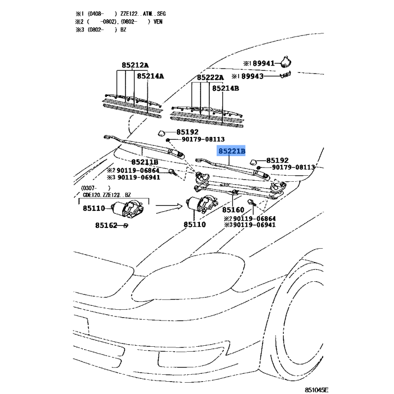 - Corolla Altis ZZE122L • 1ZZ-FE (2001-2008) - Wipers