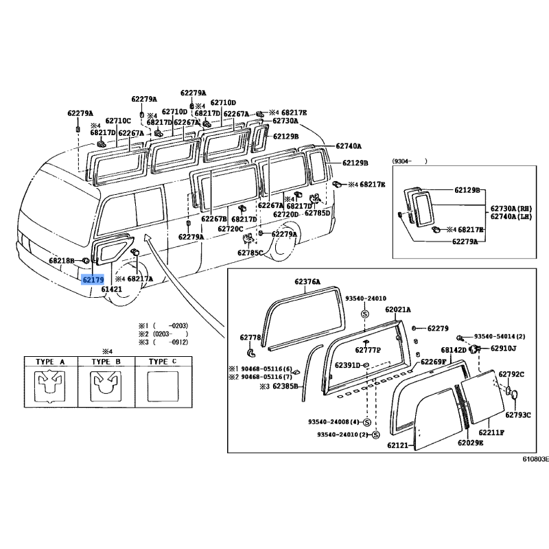 SEAL WINDOW MANUFACTURED BY TOYOTA , PART NUMBER 62179-36010 , OE PART NUMBER 62179-36010 TO FIT TOYOTA VEHICLES