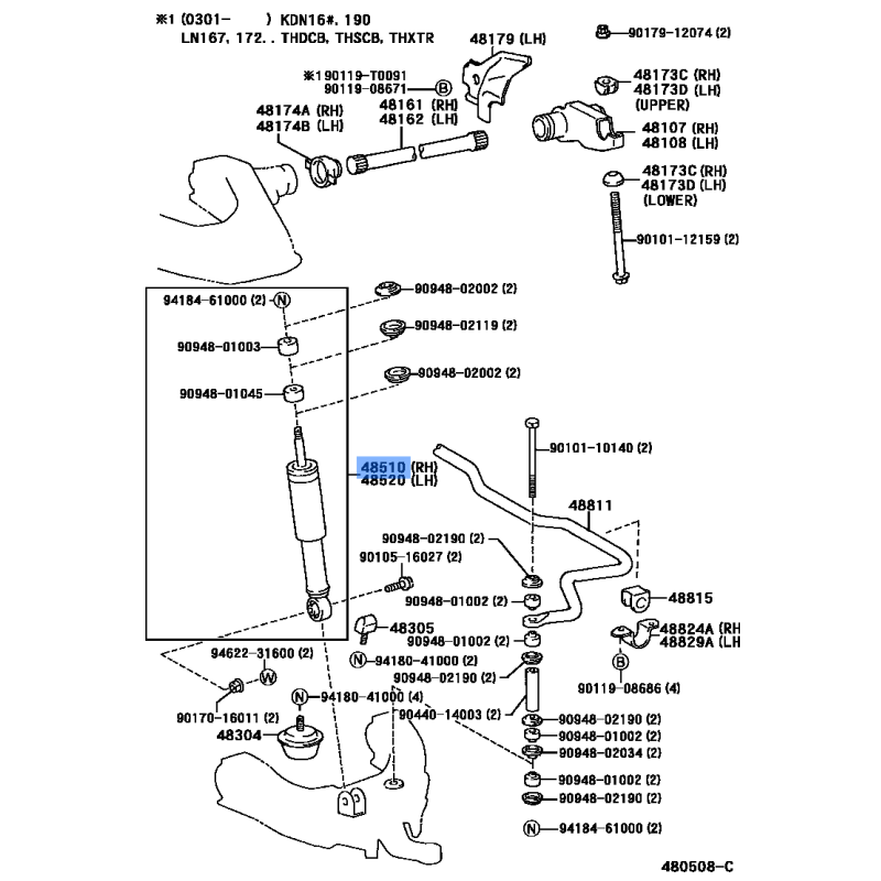 - Hilux LN167R • 5L-E (1997-2009) - Front Shock/Spring