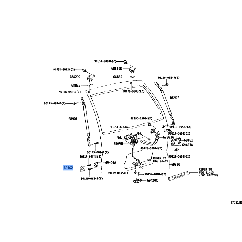 STOPPER BACK DOOR MANUFACTURED BY TOYOTA , PART NUMBER 67282-28010 , OE PART NUMBER 67282-28010 TO FIT TOYOTA VEHICLES