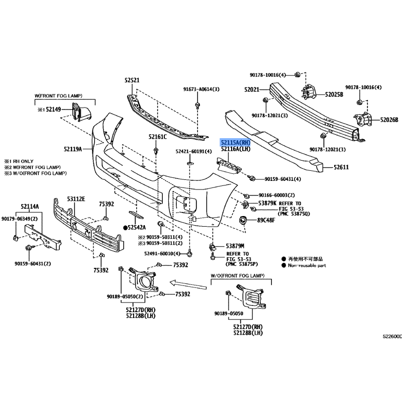SUPPORT FR BUMPER MANUFACTURED BY TOYOTA , PART NUMBER 52115-60250 , OE PART NUMBER 52115-60250 TO FIT TOYOTA VEHICLES- Manufacturer: TOYOTA