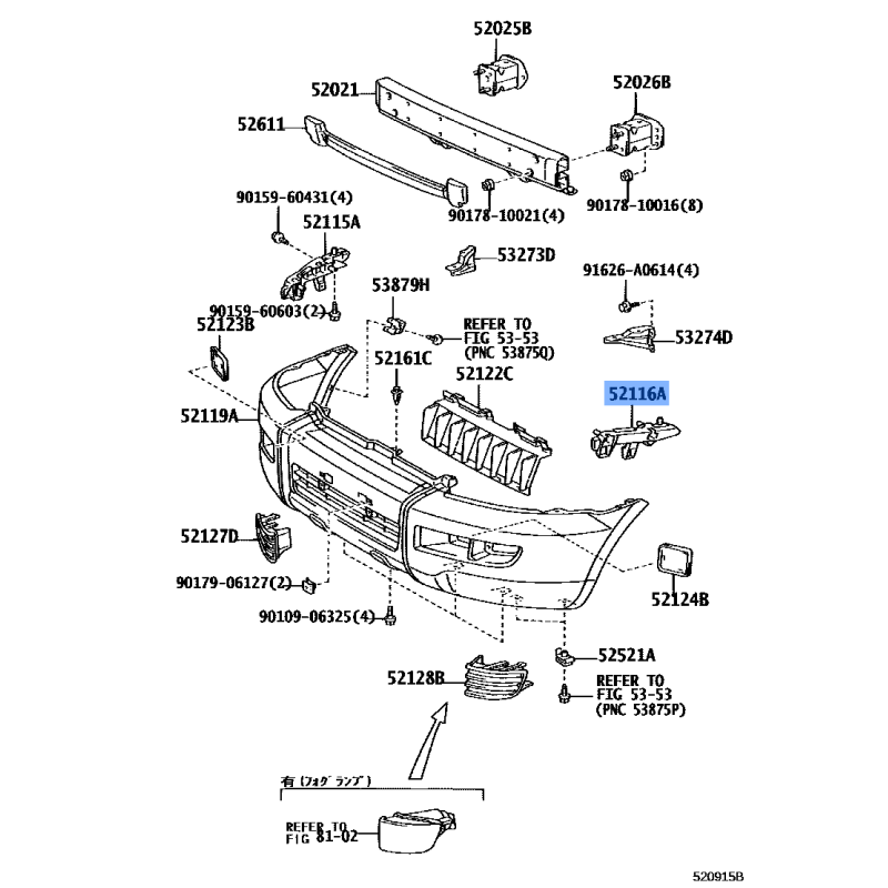 SUPPORT FR BUMPER MANUFACTURED BY TOYOTA , PART NUMBER 52116-60131 , OE PART NUMBER 52116-60131 TO FIT TOYOTA VEHICLES