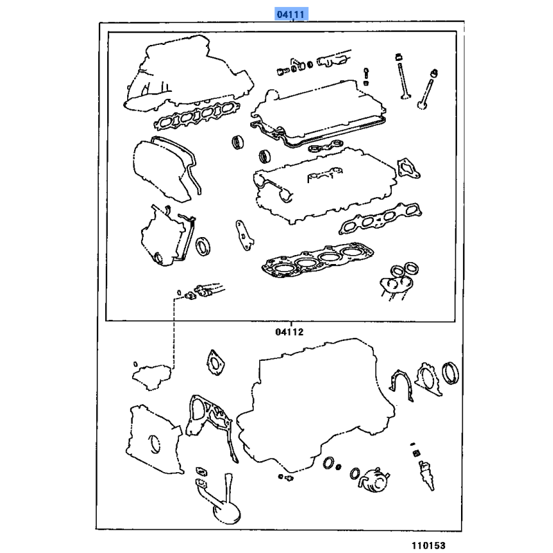 GASKET KIT MANUFACTURED BY TOYOTA , PART NUMBER 04111-50113 , OE PART NUMBER 04111-50113 TO FIT TOYOTA VEHICLES