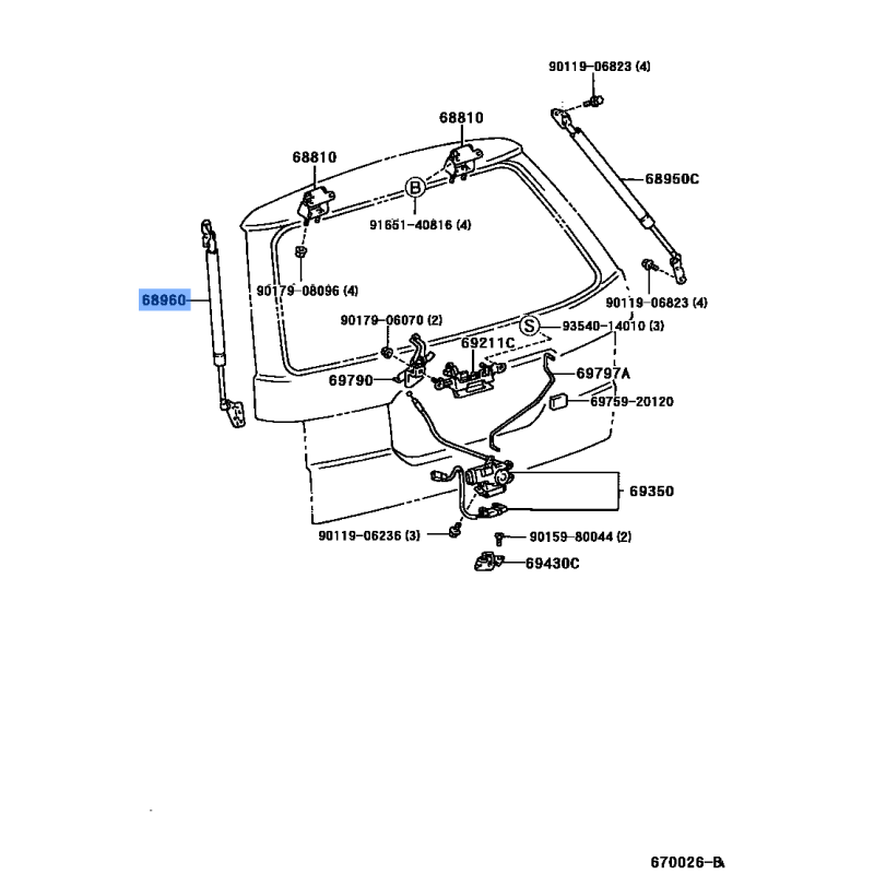 STAY ASSY MANUFACTURED BY TOYOTA , PART NUMBER 68960-28305 , OE PART NUMBER 68960-28305 TO FIT TOYOTA VEHICLES