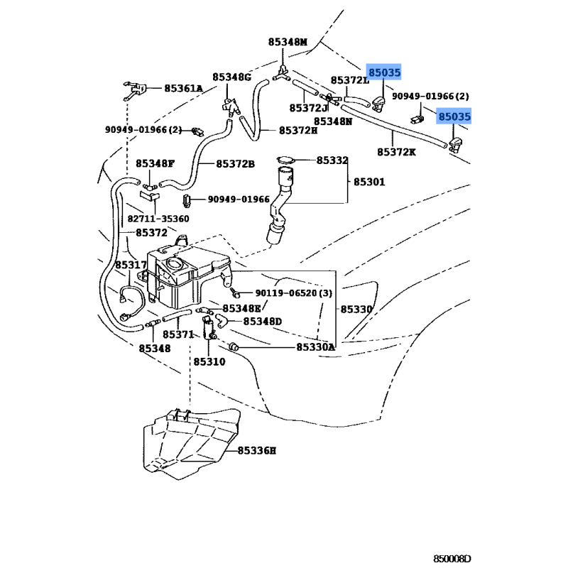NOZZLE MANUFACTURED BY TOYOTA , PART NUMBER 85381-12350 , OE PART NUMBER 85381-12350 TO FIT TOYOTA VEHICLES