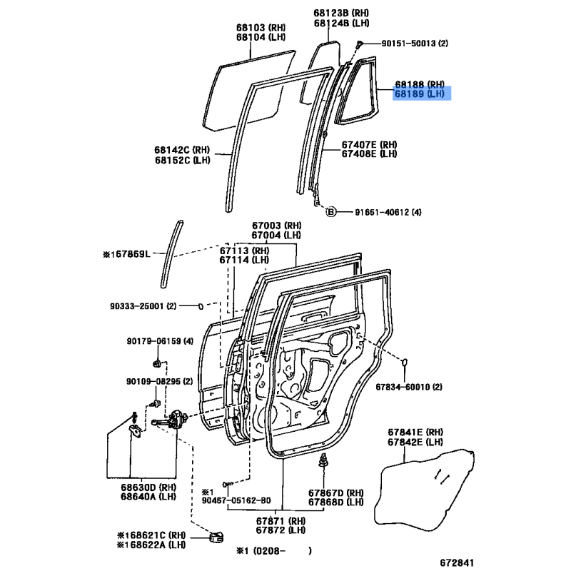W/STRIPE QURTER GLASS MANUFACTURED BY TOYOTA , PART NUMBER 68189-60040 , OE PART NUMBER 68189-60040 TO FIT TOYOTA VEHICLES- Manufacturer: TOYOTA