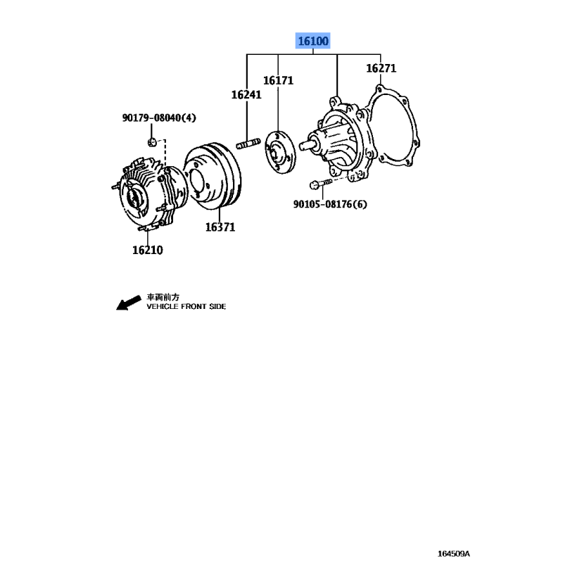 WATER PUMP MANUFACTURED BY TOY , PART NUMBER 16100-59257 , OE PART NUMBER 16100-59257 TO FIT TOYOTA VEHICLESTechnical Specification