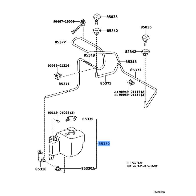 WIPER TANK MANUFACTURED BY TOYOTA , PART NUMBER 85315-60190 , OE PART NUMBER 85315-60190 TO FIT TOYOTA VEHICLES